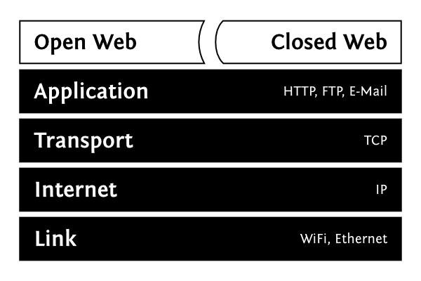 Imagine, for a moment, if you had to ask permission every time you search for a restaurant in your city. What if all those pieces of information came with a set of locks, and you had to fumble for the keys or ring your neighbor to let you in every time you wanted to find the program of your local theater? What if you had to pay a licensing fee for checking the online bus schedule? Fortunately, most of these interactions don’t require such transaction costs. That is because the supporting technical stack, the Open Web stack, already cleared hurdles and standardized these data exchanges.