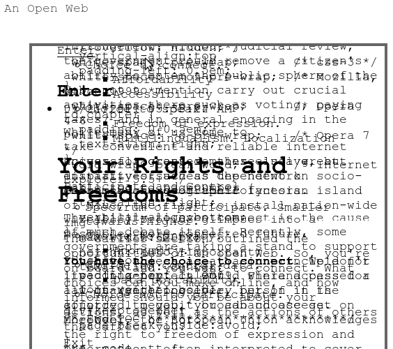 There is liberty contained within the strings of text shared on the Web. Content is a filigree knitted through text, a soft layer that has the tendency to resonate and overcome limits.