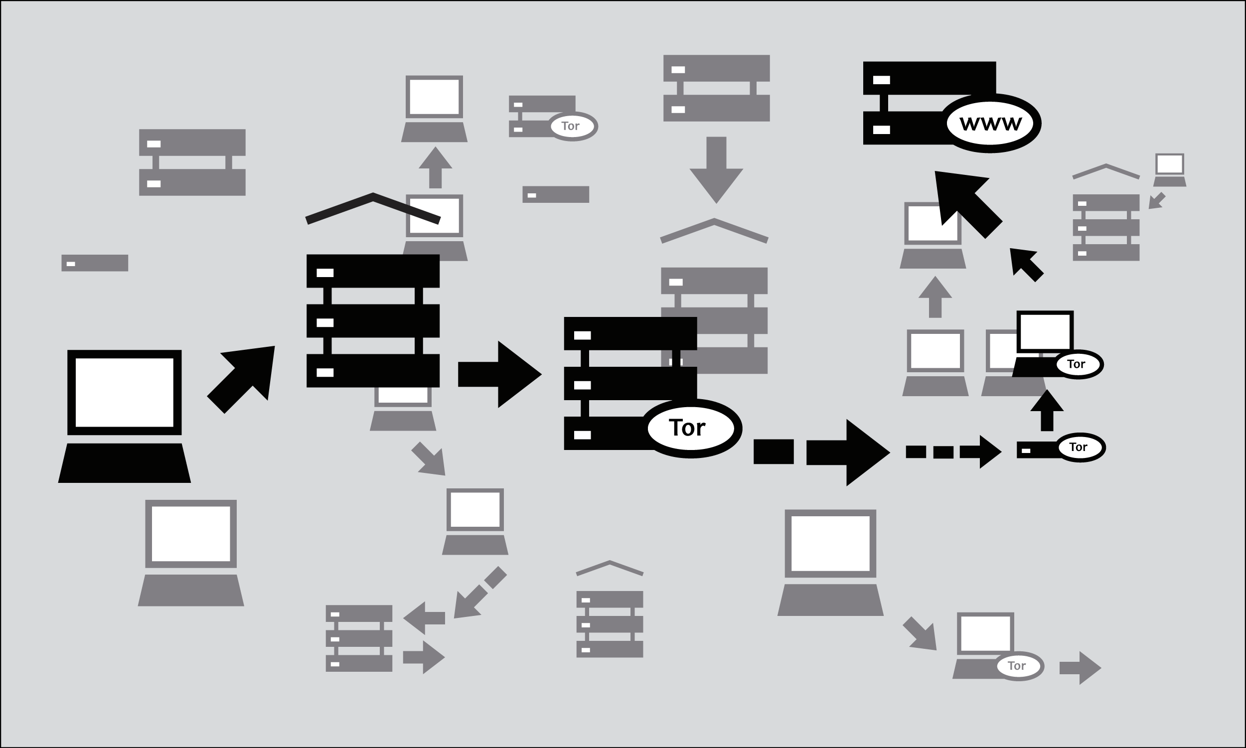 Some tools use more than one intermediary computer in order to hide the fact that you are visiting blocked services. This also hides your activities from the tool provider, which can be important for anonymity. A tool may have a clever way of learning about alternative proxies it may connect to in case the one you are using gets censored itself. Ideally, the traffic created by all of this requesting, fetching and sending is encrypted in order to protect it from prying eyes.