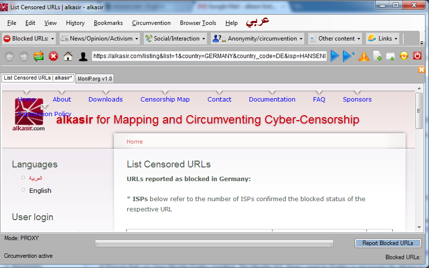 Press Enter or click GO, and if it successfully navigates to the requested website then it is working. If the link above does not work, you will have to find an alternative circumvention method. The Web proxy and Psiphon chapters of this book offer a little advice about finding a Web proxy and a lot of advice about deciding whether or not you should be willing to use it once you do.