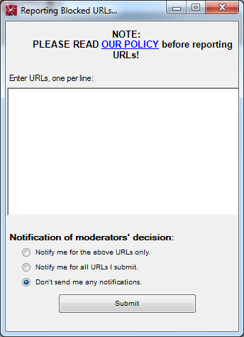 Accept the Terms of Use, and enter the URL of the blocked site you wish to visit into the blue URL bar: