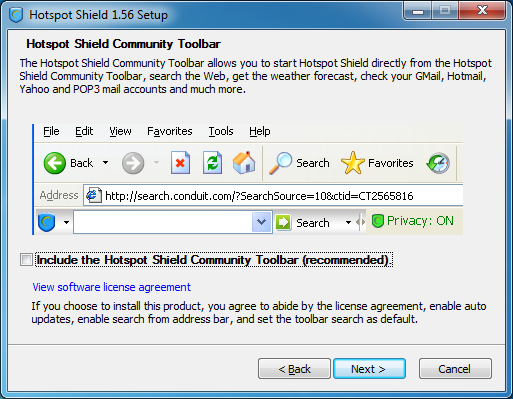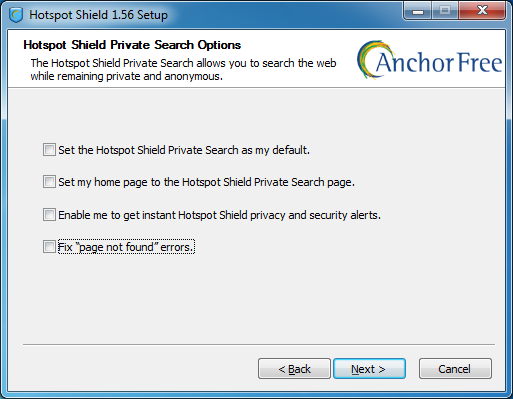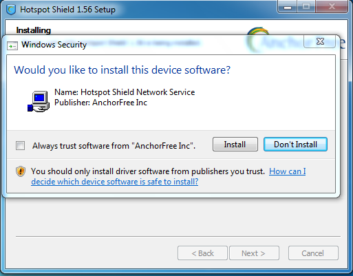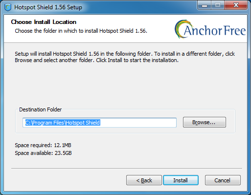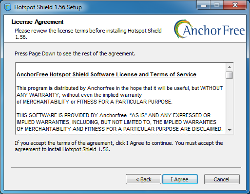 To install Hotspot Shield you must download the software from https://www.hotspotshield.com. The file size is about 6MB, so on a slow dial-up connection the download might take 25 minutes or more. To install, double-click the downloaded file and follow the steps presented by the installation wizard.