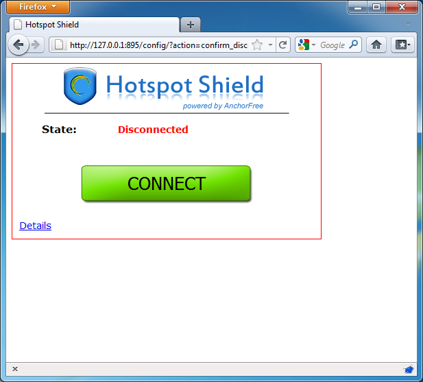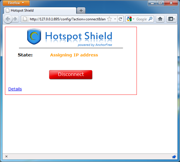 Once the installation is complete, start Hotspot Shield from the "Hotspot Shield Launch" icon on your desktop or via "Programs > Hotspot Shield". A browser window will open with a status page showing different stages of the connection attempt such as "Authenticating" and "Assigning IP address". Once connected, Hotspot Shield will redirect you to a welcome page. Click on "start" to begin surfing.