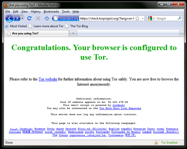 When you click on the downloaded file, it will extract itself to the location you choose. This may also be a USB flash drive which can be used in an Internet caf. You can then launch Tor by clicking "Start Tor Browser" (make sure you close any Tor or Firefox instances that are already running). After a few seconds, Tor automatically launches a special version of the Firefox Web browser with a test Web site. If you see the green message "Congratulations. Your browser is configured to use Tor." you can then use that window to open blocked Web sites.