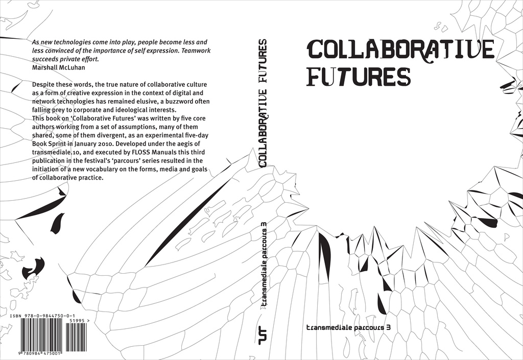 This book was first written over 5 days (Jan 18-22, 2010) during a Book Sprint in Berlin. 7 people (5 writers, 1 programmer and 1 facilitator) gathered to collaborate and produce a book in 5 days with no prior preparation and with the only guiding light being the title ‘Collaborative Futures’.
