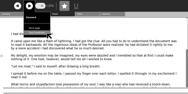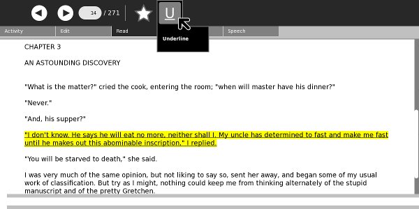 The newest versions of Read use a different kind of toolbar than the older versions. Since most XO laptops currently have the older version of Read, most of the screenshots will show that version. I'll switch to showing the latest Read to demonstrate features only supported on there.