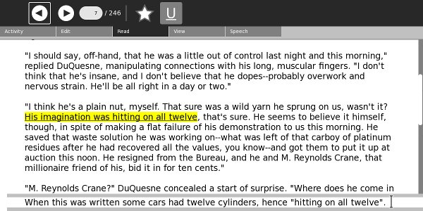 Here is the latest Read viewing a Plain Text file. These can have highlighted passages, and when you use the Text to Speech function the word being spoken gets highlighted:
