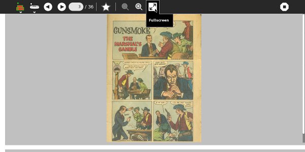 There are no large repositories of public domain comic books. Most of the CBZ's and CBR's you'll find on the Internet violate someone's copyright, although there are a few legal ones on the Internet Archive that you can find by searching for "CBZ" or "CBR", such as the Gunsmoke comic shown in the screen shots. Gunsmoke was in the CBR format so I needed to convert it to CBZ. In Windows you can do that with the free 7Zip utility that you can download here: