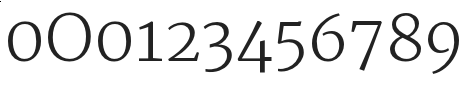 Hybrid numerals don't share the font's cap-height or x-height, but instead occupy their own height. The term "hybrid" refers to a mixing of the old-style and lining numerals. Examples of fonts that use hybrid style numerals include Georgia and the Google web fonts Merriweather and Donegal. The zero, capital O, zero, 1, 2, 3, etc glyphs from Merriweather are shown below.