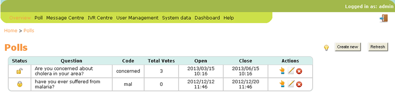 A simple and fast way to measure opinion on an issue is to conduct SMS-based polls. SMS polls enable your callers to respond to a structured question via an SMS response. As the SMSs arrive on the Freedom Fone system the individual SMSs are tallied and a summarized tabular output is generated. In scenarios which need urgent action but yet rely heavily on evidence-based information to take the first step, SMS polls can be a powerful and effective tool.