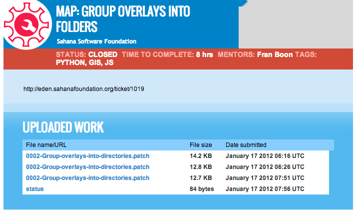 To view past Google Code-in projects, click on Mentoring organization details in the middle of the page underneath the Mentoring Organizations icons. Here you can click on the organization name and view all of the Open Tasks and Closed Tasks for that year of the contest for that organization. To view Student's work scroll down to Closed Tasks, click anywhere on the line of the task you'd like to view and the task description and the "Uploaded Work" will appear.