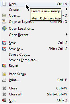 The File menu contains common file options such as creating a new image, Open, Close, Save, and Print. You can also open images as layers, for creating multi-layered images or animated GIFs.