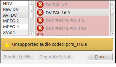 أدخل هذا الخطأ في محرك بحث لمعرفة ما يتعين عليك القيام به لتنصيب برامج الترميز الناقصة. في هذه الحالة، نكتب رسالة الخطأ "Unsupported audio codec: pcm_s16le".