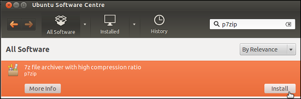 إذا لم يتوفر لديك خيار 7z حينئذ قد يتعين عليك تنصيب تطبيق p7zip من مركز البرمجيات أو عن طريق استخدام الأمر التالي.