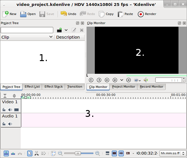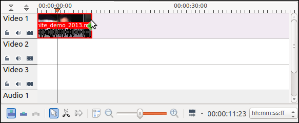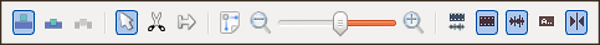 هناك بعض الأدوات المفيدة التي تساعدك على التحرير بسرعة. في برنامج kdenlive، يمكنك العثور على هذه الأدوات في شريط الأدوات في الجزء السفلي من نافذة المحرر.