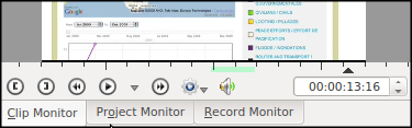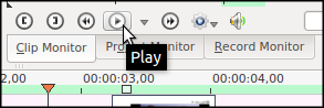 قم بمعاينة التسلسل الزمني للفيديو الجديد في شاشة المشروع Project Monitor: وتوجد في منطقة الشاشات مع شاشة اللقطات Clip Monitor: انقر جدول شاشة المشروع Project Monitorإذا لم يكن قد تم اختياره بالفعل..