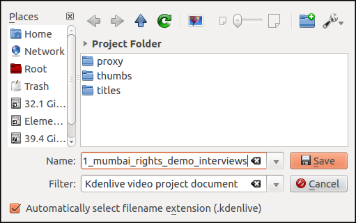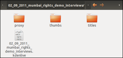 ضع أنواع الملفات المختلفة التي نستخدمها في مشروع الفيديو داخل مجلد المشروع باستخدام أحد برامج إدارة الملفات. في هذا المثال سنستخدم برنامج نوتيلوس Nautilus في نظام أوبنتو.