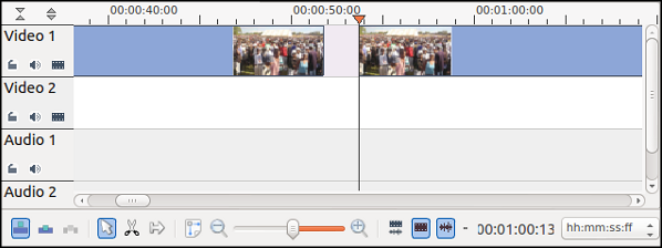 ثم قم باختيار الجزء من اللقطة الذي ترغب في إزالته واضغط على مفتاح حذف على لوحة المفاتيح. سترى الآن مساحة فارغة في التسلسل الزمني.