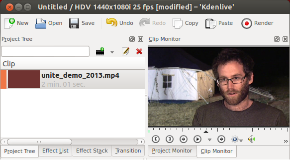 Clip Monitor: Once you have added your clips to the Project Tree you can review them in your Clip Monitor. This is the primary place to chose which parts of your original footage you wish to put into your new video.
