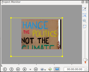 The screen should now show a yellow frame around the image in the Project Monitor and there should be some options in the Effects Stack.
