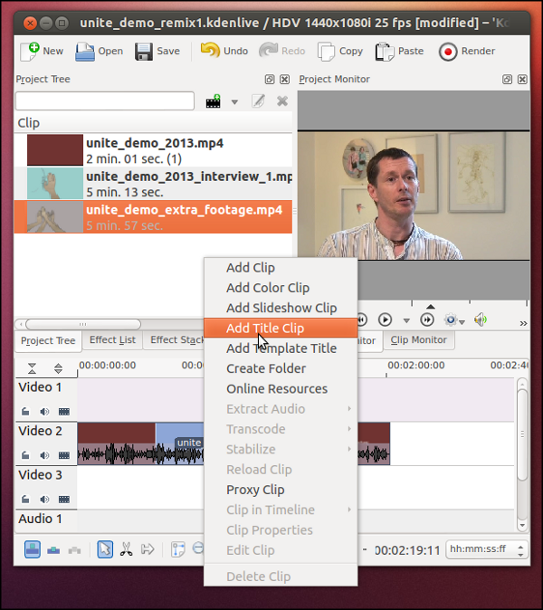 First, right click in your Project Tree and select Add Title Clip