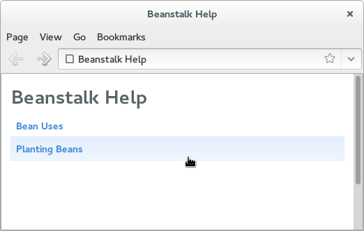 In this tutorial, you will create a simple multiple-page Mallard document for the fictitious Beanstalk application.