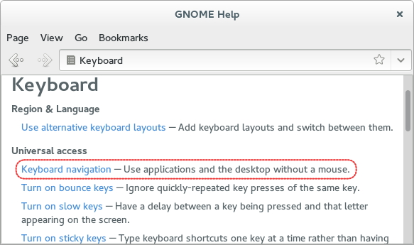 <info> <desc>Use applications and the desktop without a mouse.</desc> </info> <title>Keyboard navigation</title>