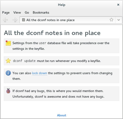 <p>If dconf had any bugs, this is where you would mention them.