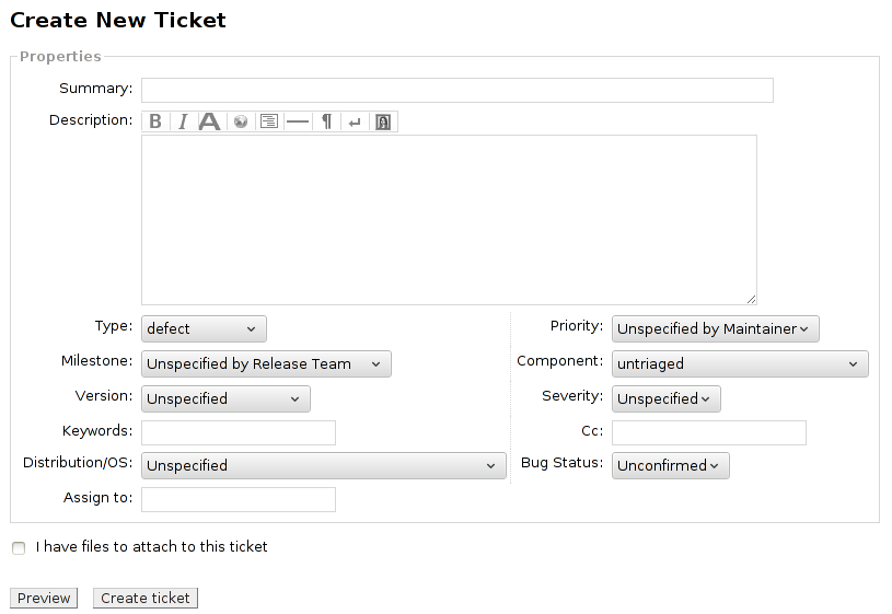 All the details of the bug including steps to reproduce it (if any). If it's graphic, you can link to a screenshot. If you have a log, you can attach it or paste a trace of the log in the ticket description.
