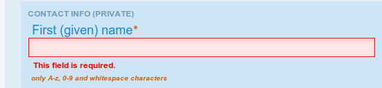 If you do not fill out a required field or put invalid data in the form, fields with errors will be highlighted in red.