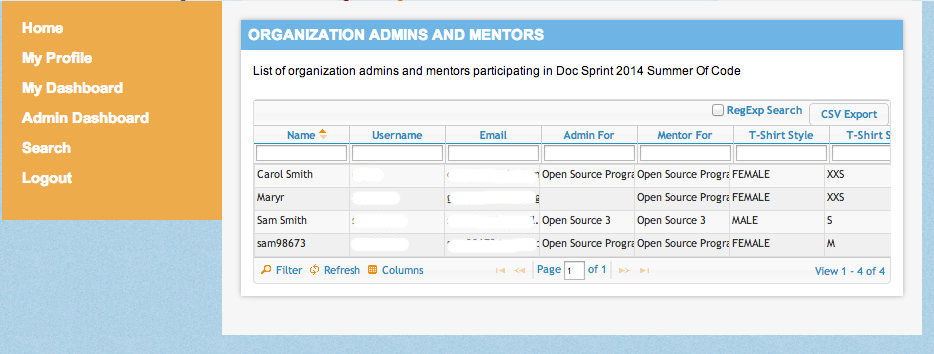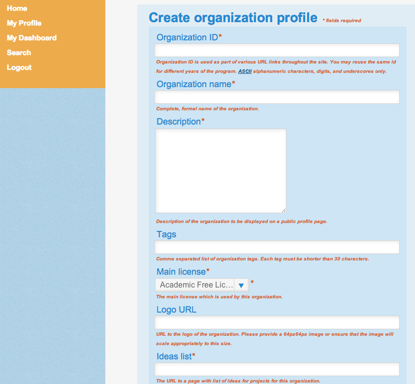 Profiles are created on the Register as Student, Register as a Mentor, or Register as an Org Admin pages (depending on your role). If you have not registered on the website for any previous programs, you also have to create a username which will be a part of various URLs throughout the website. This username will be publicly exposed to other users, so it should not contain any sensitive personal information.