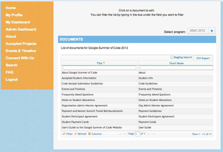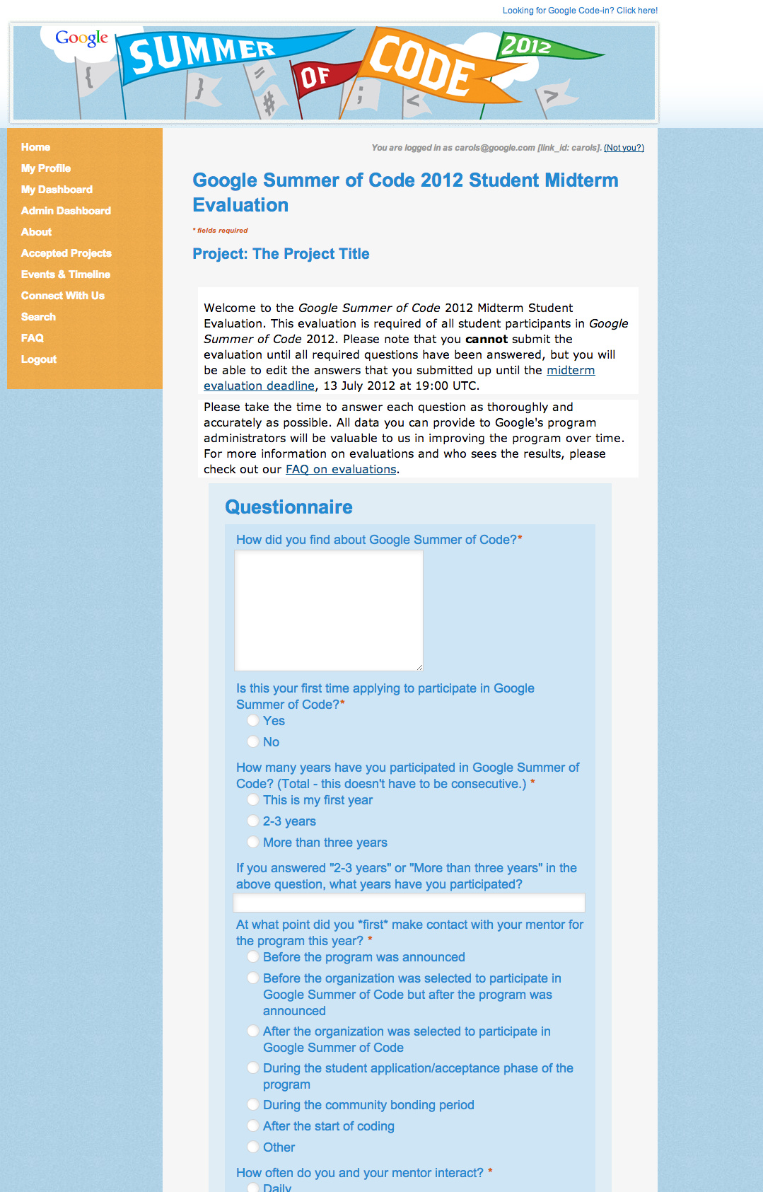 Using the Google Summer of Code Website