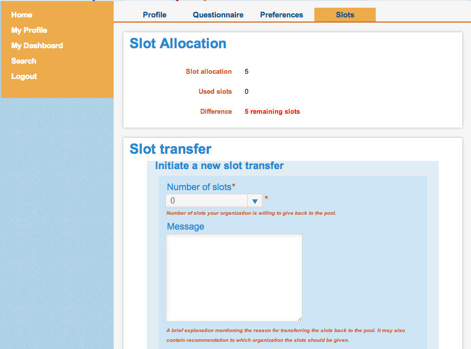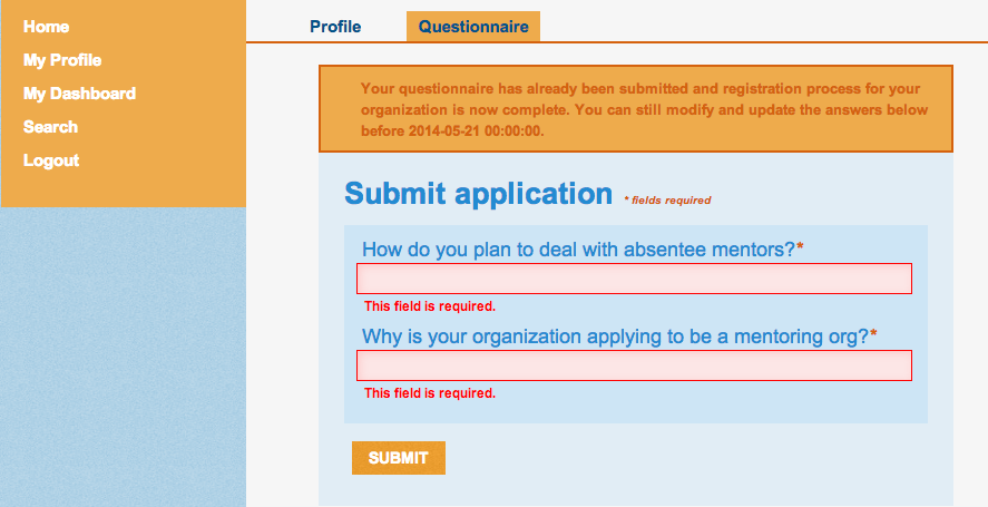 You can visit My Profile at any time to edit your personal information. My Dashboard is where you will find links to your Proposals page, a list of Important Documents and a list of Shipments sent to you. If you are accepted it will eventually display links to your evaluations, and more.