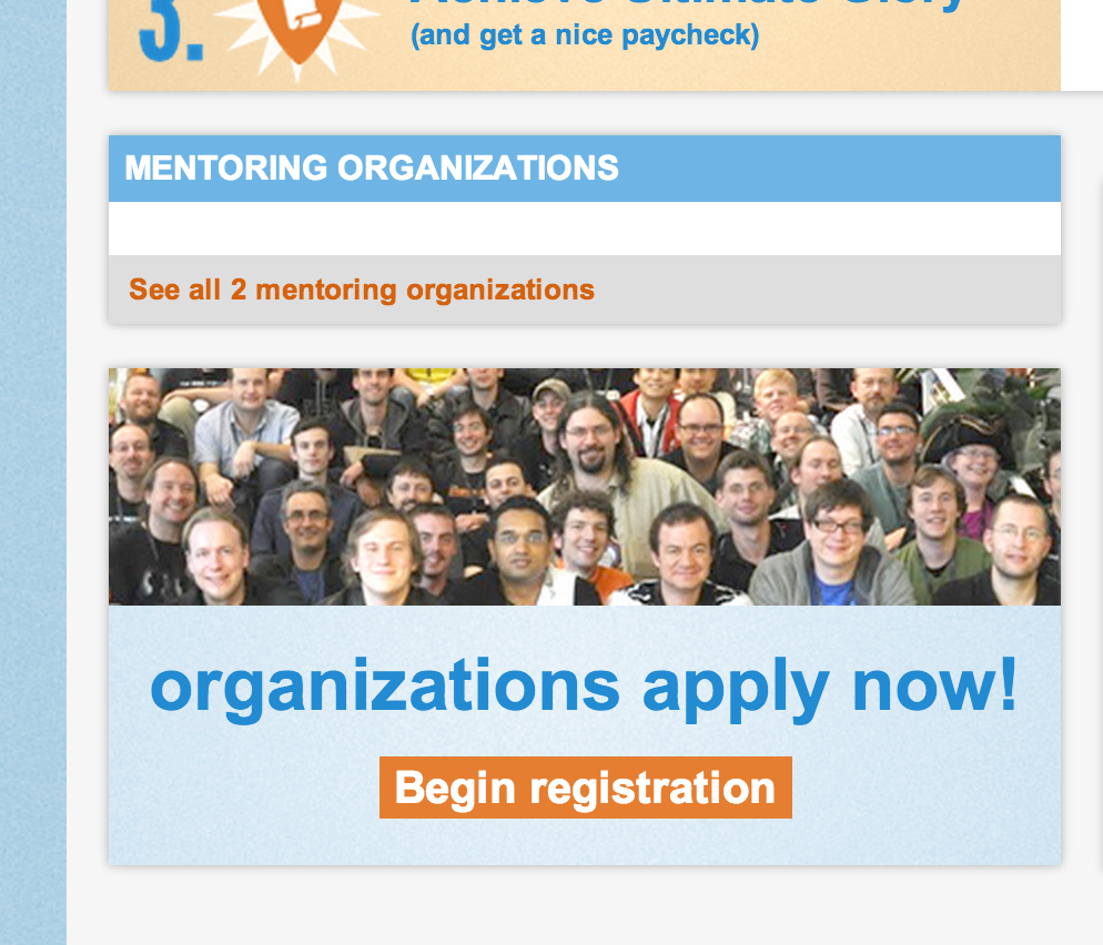 It is possible to register as a Mentor and follow the steps above at any point once the Organization has been accepted all the way until the final evaluations are submitted. The screen will look a bit different if you try to register as a Mentor after the Students have been accepted. See the screenshot below for what to expect. You can then follow all of the same instructions outlined above to register as a Mentor.