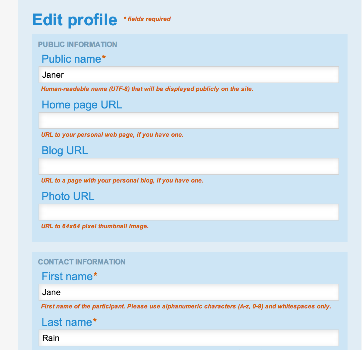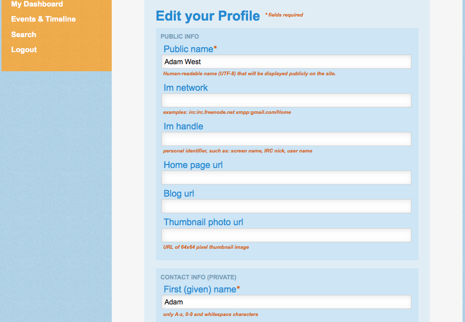 Make sure that your Public Name is professional and consistent with the name or handle you use within your project. For example, if your name is Bill Chow and you go by "bchow" on your project mailing list, you might choose "Bill_Chow" or "bchow" as your "Public Name". Please do not choose a Public Name that is potentially offensive, such as "jacktheripper".
