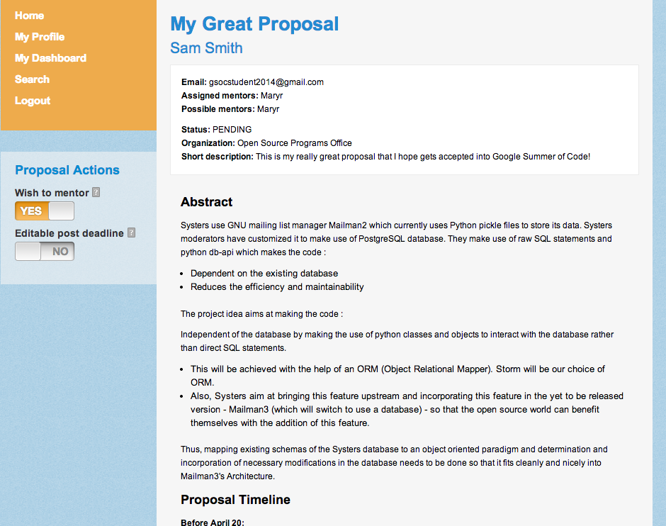 Remember, the proposal can be edited at any time before the student application deadline, and can be edited after the deadline if a Mentor requests it.