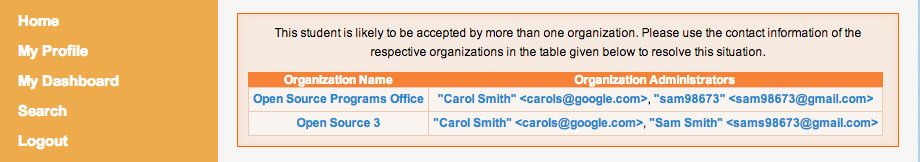 In order to create a Student profile, a user should click the Register as a Student link on the homepage during the application period. Mentors register by going to an Organization page and clicking the Register as a mentor link. Organization Administrator profiles are created as part of the organization application process (and existing Organization Administrators can name new Organization Administrators at any point after an organization's acceptance into the program).
