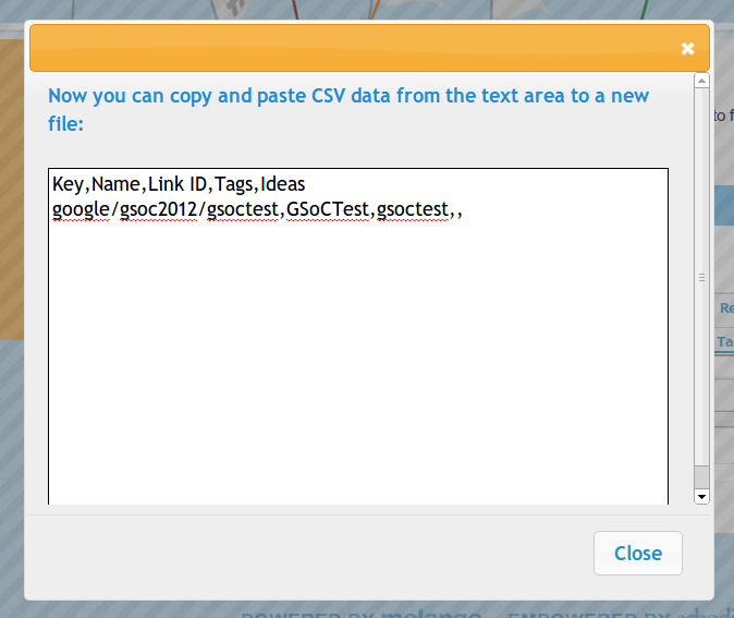Most often the solution to this error is to wait a little while and refresh the page. Melange sometimes has intermittent timeouts or has load issues. Try again a little later. If the defect is persistent and repeatable, please contact the Melange developers at melange-soc-dev@googlegroups.com with as many details about it as possible. Helpful details include which operating system and browser you are using, including the version number of each, what you were trying to do when you encountered the problem, and exactly what happened.