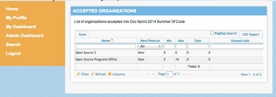 Your accepted project will also be displayed on the Accepted Projects section of the homepage from the left hand navigation bar, along with all the other projects accepted into this instance of the program.