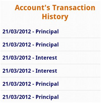 To display history transactions click on View Transactions History in Account Details menu. A screen like following appears:
