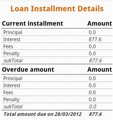 - View the installment details