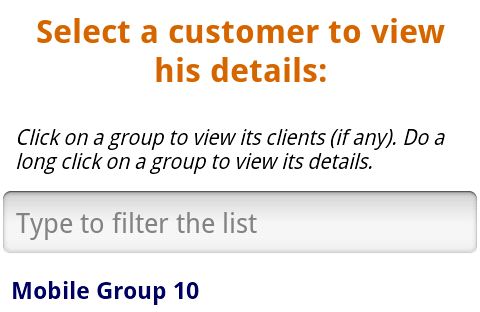 Click on Group Name to expand the list and to see all clients in the group. Do a long click on the group to view its details. You may also type a name of group or client to filter the list.