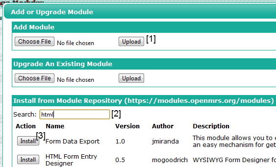 module repository: An online resource to find and maintain community-developed OpenMRS add-on modules. http://modules.openmrs.org/