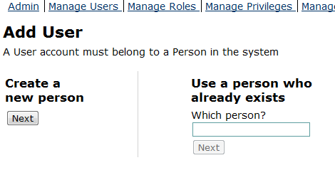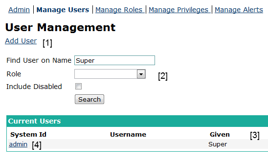 To create these users, we'll go through Administration > Manage Users. This page also lets you find and edit existing users.