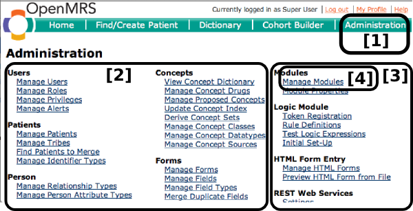 super user: An OpenMRS user with permission to perform all management tasks in the application.