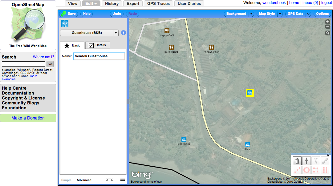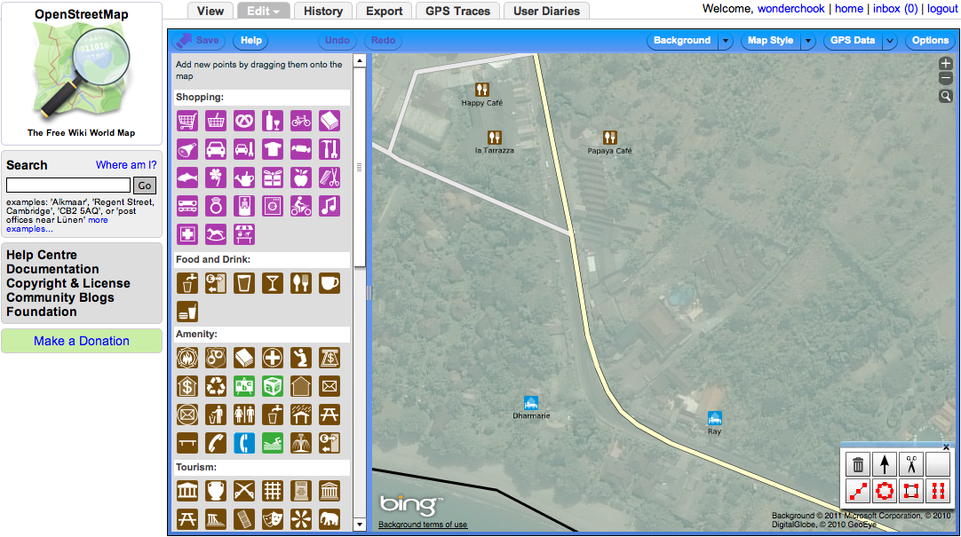 Using your local knowledge of an area is the simplest and most effective way of collecting data for OpenStreetMap. For example, the knowledge you have of the area around your home and workplace is probably very up-to-date and accurate because you spend so much time there. Adding this data to OpenStreetMap using the provided aerial imagery as a guide is quite easy, and as you finish mapping more of your area you can work your way out into surrounding areas you might not know as well.