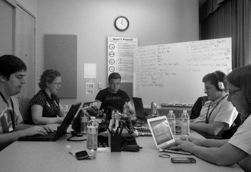 The OpenStreetMap is not just about the data, there is a vibrant community that meets both online and in person all over the world. People meet to do mapping, develop software and even to write this book!