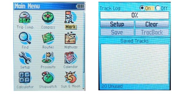 GPS Main Menuand GPS Tracks logs
