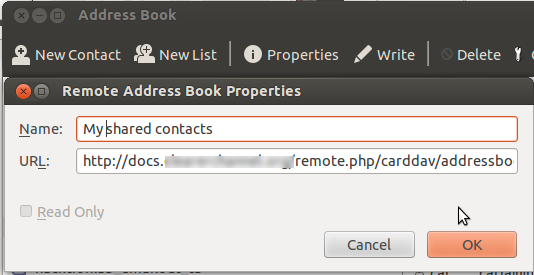 To use ownCloud as a shared repository of contacts, you can export your contacts as vCard (.vcf) files from your email service – from Thunderbird or Gmail, for example. You can then import these contacts into your ownCloud account. You can also use Thunderbird to manage your shared contacts by setting up a remote address book.