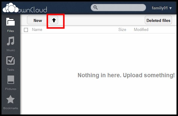 One needs a name and password to use ownCloud. Once you're logged into your account you see the following:
